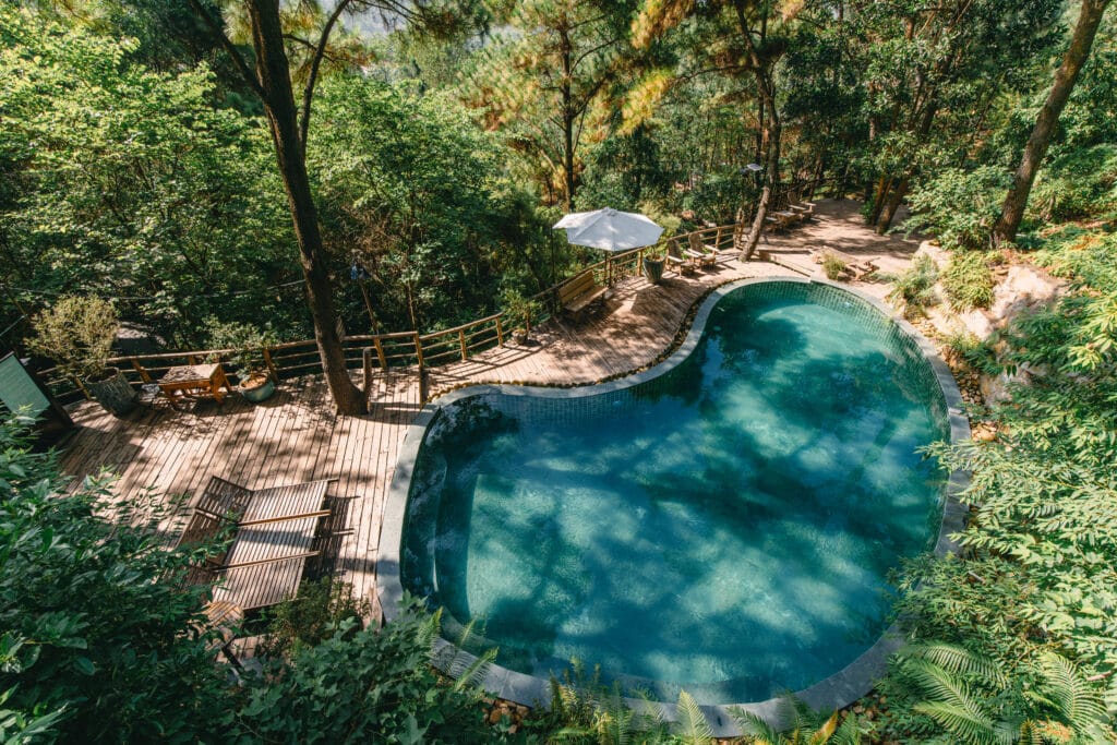 Here, guests can unwind by a natural stone-edged pool, enjoy drinks or light bites under swaying umbrellas, and simply breathe. It’s not just about eating, but about pausing — letting your senses tune into the quiet rhythm of the woods. The atmosphere is both peaceful and grounding, perfect for slow afternoons and quiet conversations.