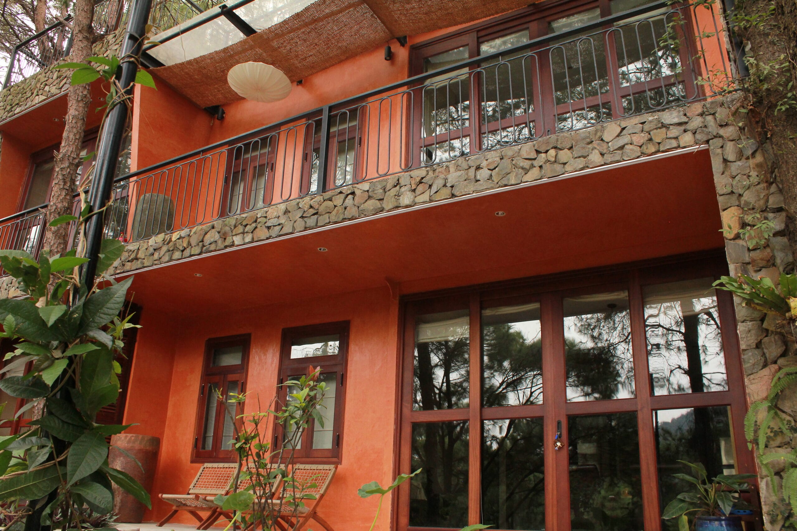 Không gian nghỉ dưỡng này được bao bọc hoàn toàn để đảm bảo sự riêng tư, với cổng gỗ mộc mạc và lối đi lát đá lớn dẫn vào. Một trong những điểm đặc biệt nhất là khoảng sân trước rộng rãi và ban công cao, nơi bạn có thể phóng tầm mắt chiêm ngưỡng cảnh quan thiên nhiên 360 độ tuyệt đẹp.